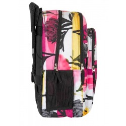 Incluye: 1 mochila escolar doble de color morada, blanca y negra con diseño de flores, logo bordado, sistema adaptable a carro portamochilas oculto, asas acolchadas, transportables y con medida ajustable, respaldo acolchado para mayor comodidad, forro interior de protección, cintas reflectantes en los tirantes, asa de mano en la parte superior, doble espacio interior con cierre de cremallera, bolsillo frontal con cierre de cremallera y bolsillo lateral de malla para botellas.
