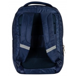 Se trata de una mochila fabricada a través de poliéster satinado, combinado con eva en el frontal y en color azul marino. Es perfecta para llevar contigo el ordenador o tablet, con multidepartamentos y adap trolley. En ella podremos encontrar un compartimento principal, forrado en su interior, con cremallera con doble cursor para facilitar su apertura y gran capacidad. Además, contiene varios bolsillos extras y hasta uno trasero ¡antirrobo!. La zona de la espaldera como sus tirantes, que son ajustables, estan acolchados para una mayor comodidad.